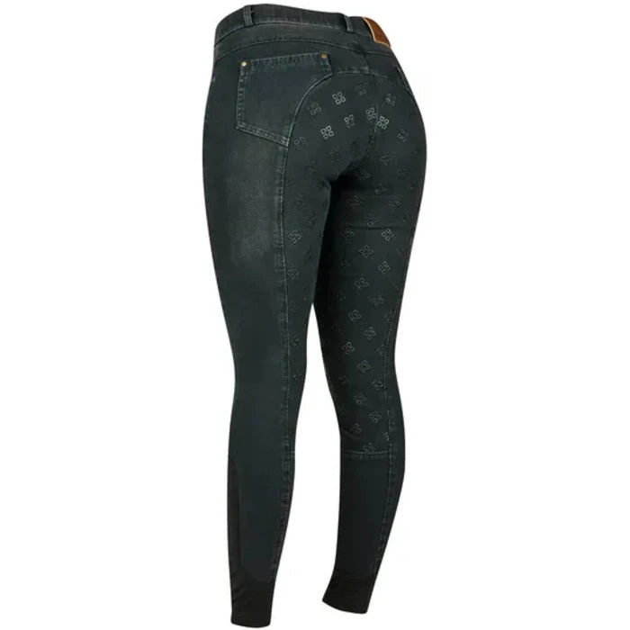 - Vintage wash denim look breeches with silicone (PU) grip gel full seat.
