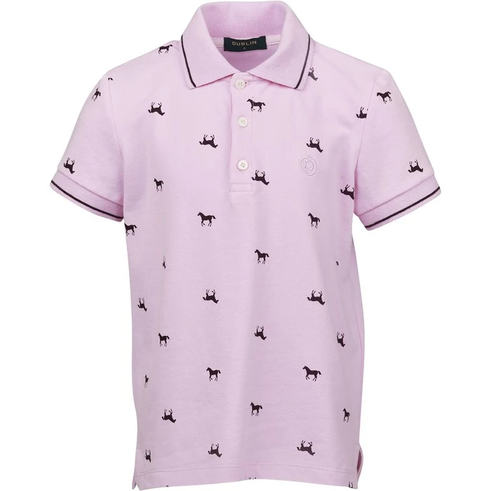 This is a fun and comfortable edition to any childs wardrobe, with all-over horse motif print this classic stretch pique polo is naturally breathable making it perfect for all day wear. Short sleeves with flat knit rib cuffs and collar that can be worn up to offer protection on the neck on those sunny days. The button placket makes this easy to get on and off as well as offering a sporty look.