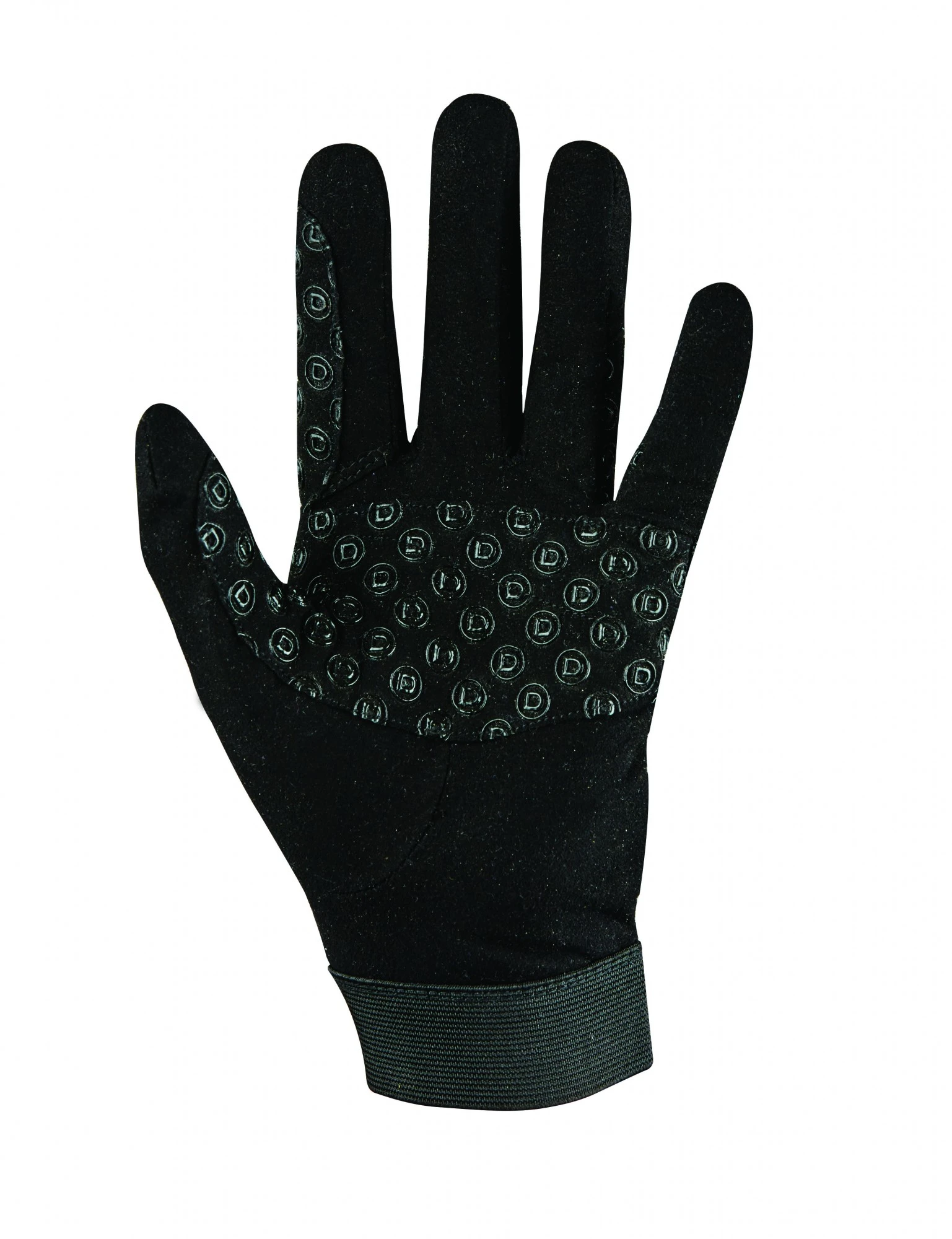 Dublin Cross Country Riding feature strategically placed D logo silicone print on the inner palm and fingers to provide grip where needed, elastic wrist and touch tape closure, neoprene on the back of the hand and stretch panels in the knuckles for additional stretch and comfort.