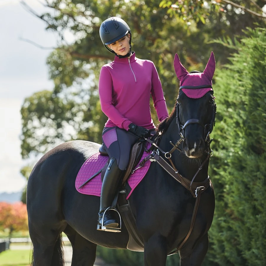 The peached outer works to shed dirt, hay and horse hair, to keep you looking smart. A stand up collar with half zip placket, in a semi fitted style to offer a comfortable fit.