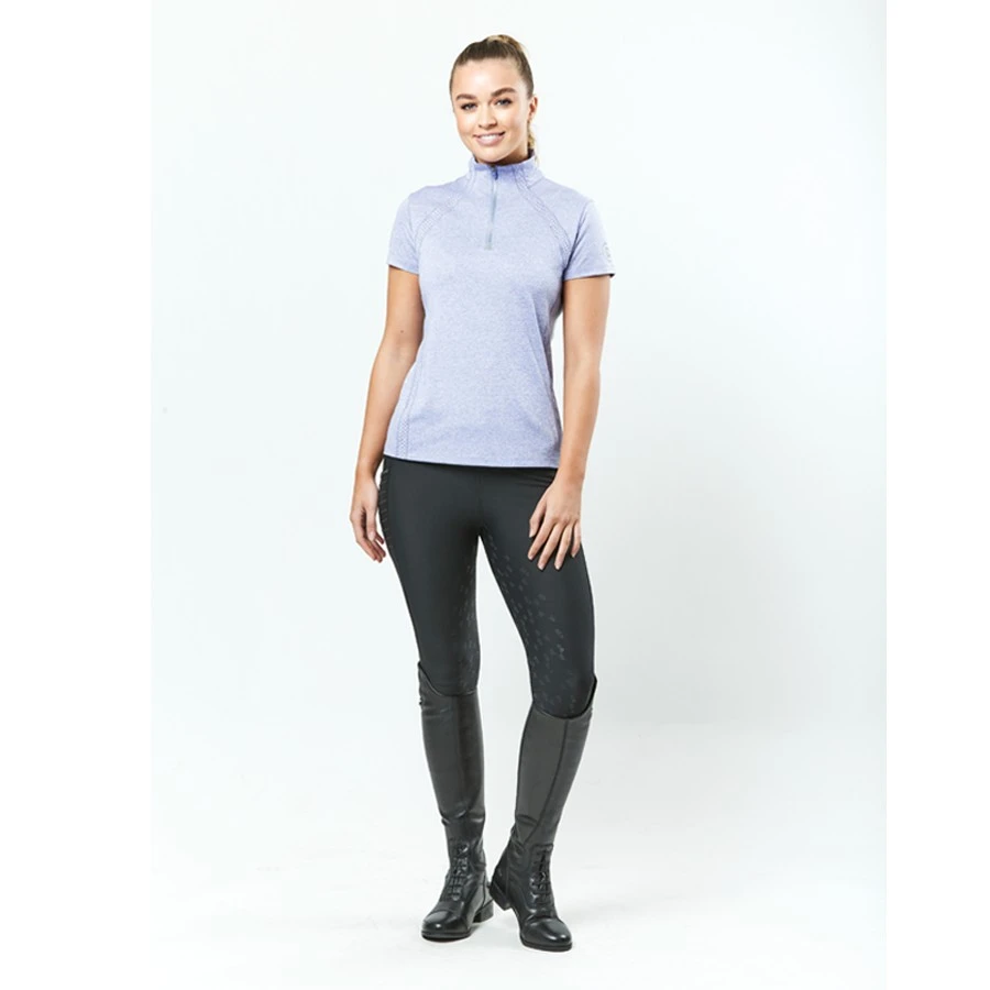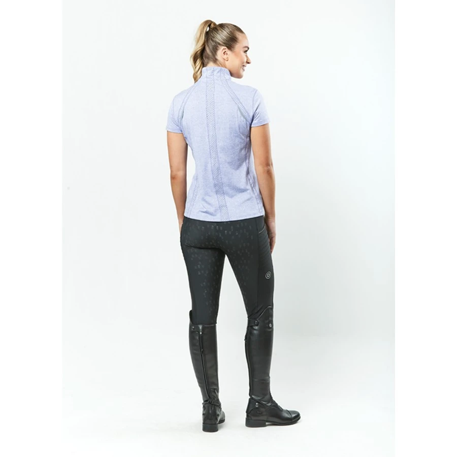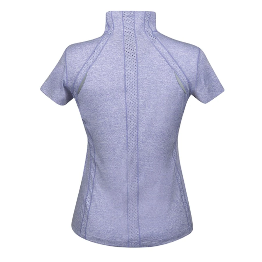 1/4 zip technical top in comfort dry technology & breathable stretch polyamide fabric. Laser perforated airflow mesh detailing with silver reflective tape detail on back. Short sleeves. Slim fit.