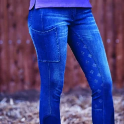 Dublin Ladies Shona Full Grip Silicone Print Denim Breeches (Light Blue Denim)