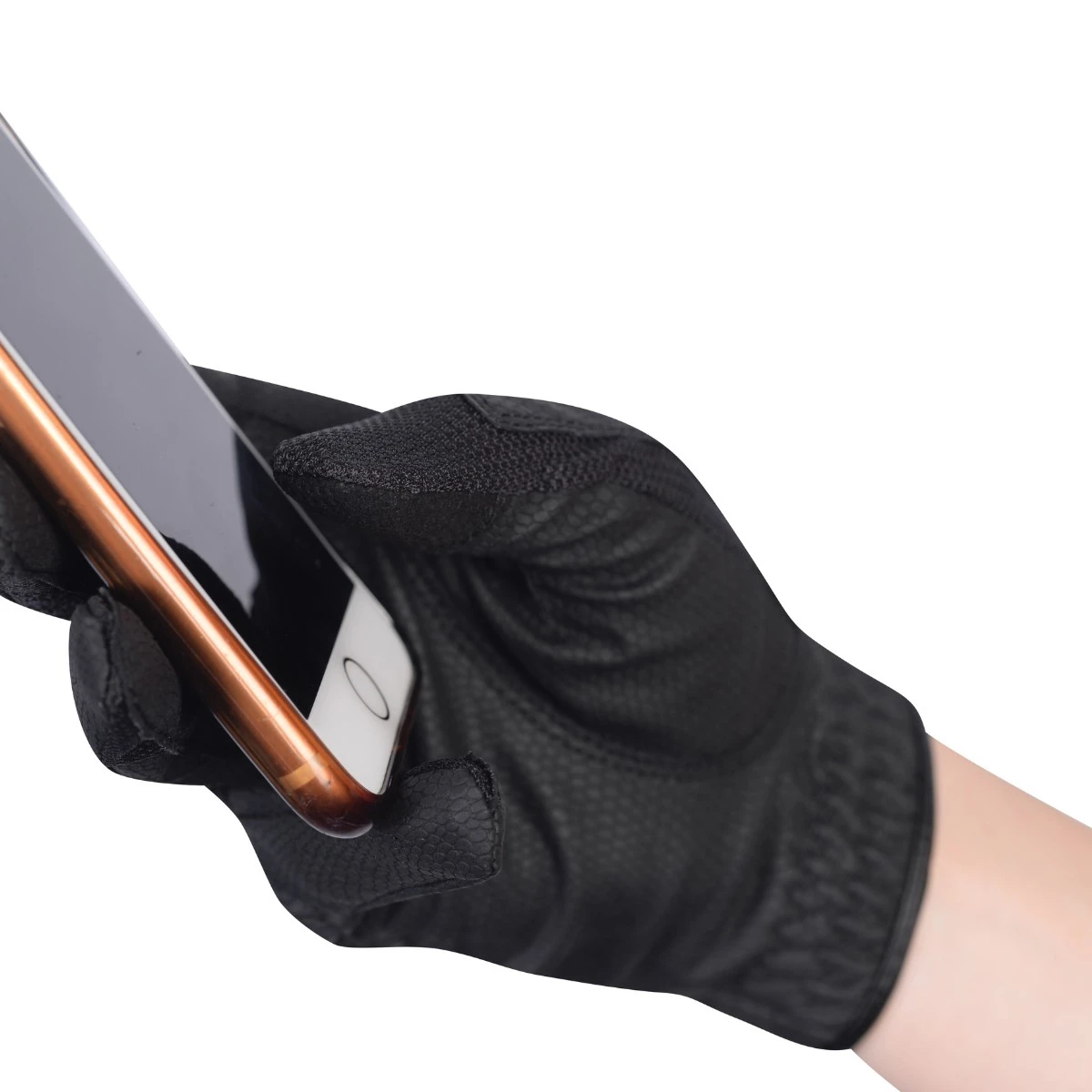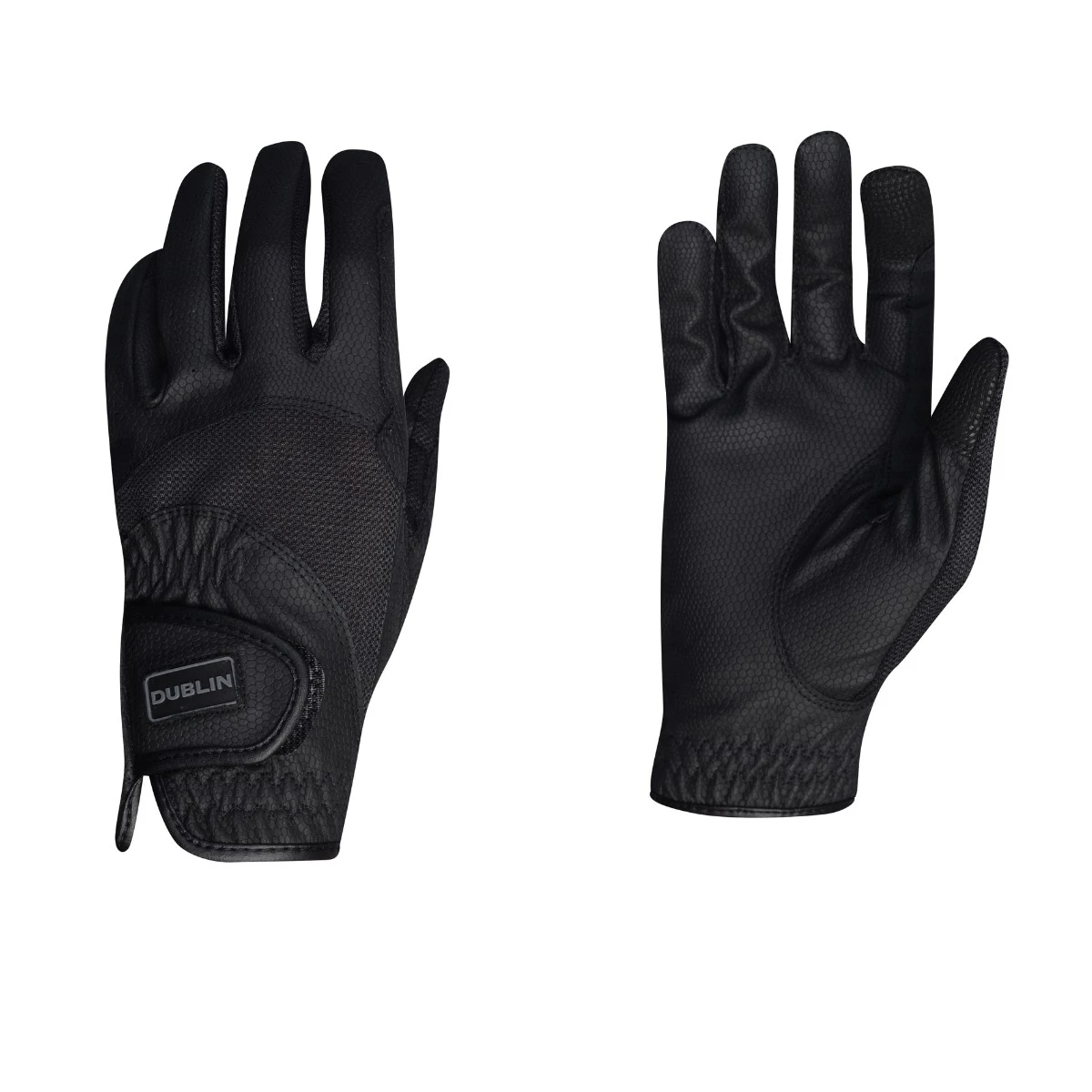 The Dublin Mesh Panel Riding Gloves are made from a stretchable synthetic serino fabric for comfort and grip, with air vented mesh panels across the back of the hand for breathability. Featuring an adjustable touch tape closure and are touch screen compatible for ease of use.